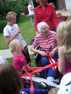 | Great Grandma came over to watch the swimming, enjoy dinner and fireworks. |